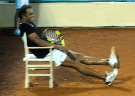 På et tidspunkt blev Grosjean træt af at spille. Han gav ketcheren til én af bolddrengene og bad ham om at spille lidt mod Al Aynaoui.