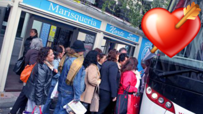Kvinder i alderen fra knap 30 til 60 fra hele Madrid-området og sågar fra udlandet bliver smidt på bus og sendt på landet. Omkring 50 kvinder har hver betalt 20 euro for at være med i Kærligheds-karavanen, som bussen kaldes.