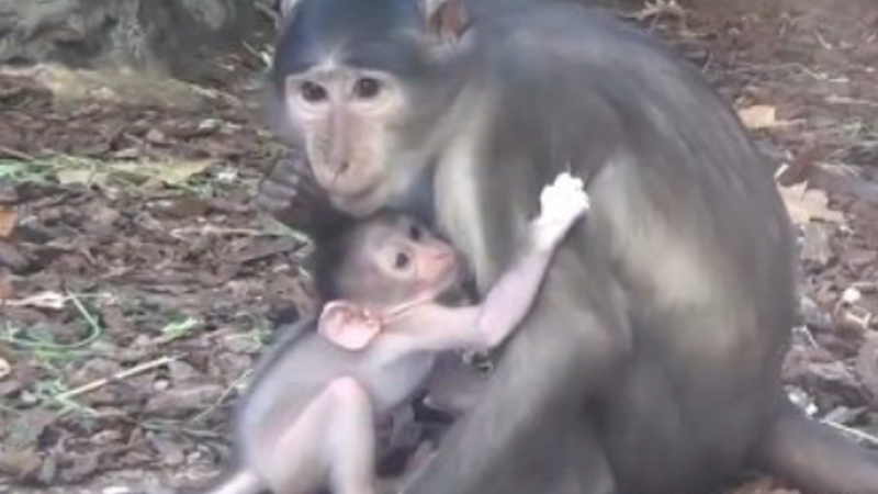 VIDEO: Truet mangabey-abe er kommet til verden i Barcelona Zoo, og det er en bette sulten fyr.