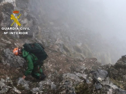 Men han er uden tvivl faldet et stykke, og det har været i et vanskeligt fremkommeligt sted, da Guardia Civil-betjente fra den særlige bjerg rednings-gruppe, GREIM, blev sat i aktion.