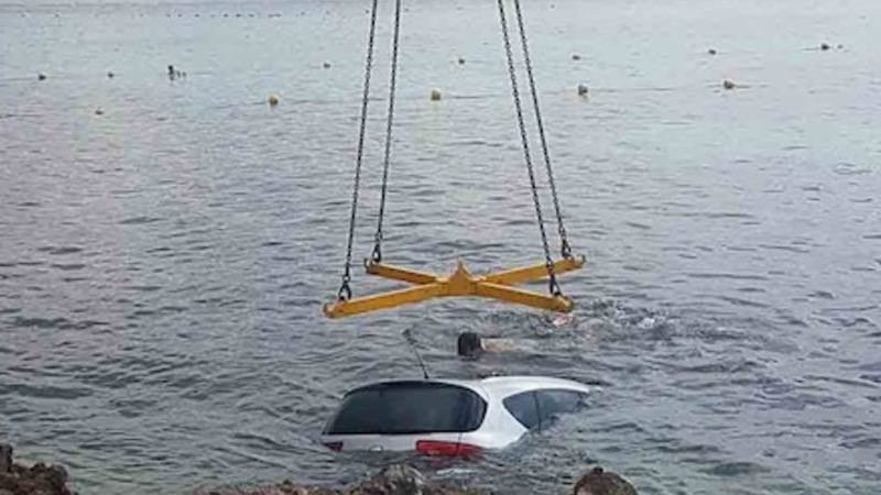Uden at noget på vejen var kommet til skade, kunne det samme ikke siges om bilen, der styrtede direkte i havet.