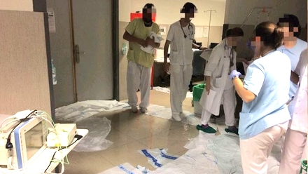 Her kæmper personale for at fjerne vandet på skadestuen i Hospital la Paz