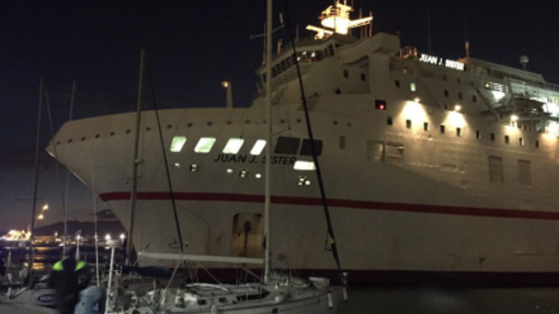 Stævnen af 'Juan J. Søster' smadrede ind i kajen, da skipperen forsøgte at lægge til kaj i Muello Uno i Málaga.