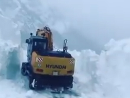 For et par dage siden blev en video delt på twitter. Her er vi med i Puerto de San Isidro i Asturien, hvor man er i gang med at rydde syv meter sne væk. Syv meter! Se bare her: