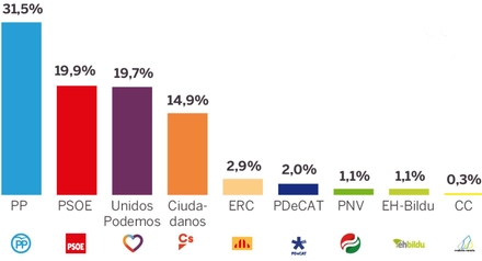 PP blev det største parti, men PSOE steg ligeså meget og gjorde meningsmålingerne til skamme ...