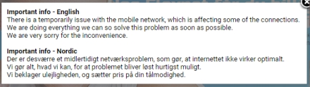 Ang. det problem, som har været, har der været tale om en teknisk systemfejl hos Movistar. Heldigvis ser det problem ud til at være løst, og vores gode, tålmodige kunder, skulle gerne have deres stabile og hurtige internet tilbage i løbet af i morgen ;)
