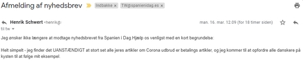 Og en trussel fra fra Henrik Schwert, der i går begrundede opsigelsen af det gratis nyhedsbrev med følgende begrundelse: