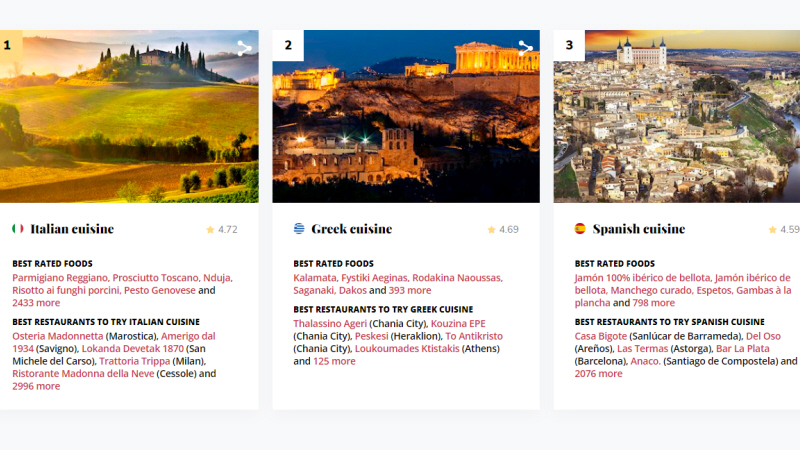 Verdens køkkener er blevet rangeret på Tasteatlas.com ud fra brugerstemmer, der har givet point for ingredienser, retter og drikkevarer. Det har resulteret i en Top 95.