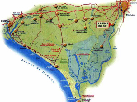 Tag motorvejen til Sevilla og derfra til Huelva. Før Huelva vises der af til Almonte. Fortsæt forbi Almonte til El Rocío. Afstand fra Málaga: 290 kilometer.