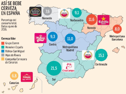 De spanske regionale forskelle er ret tydelige i de foretrukne ølmærker.
