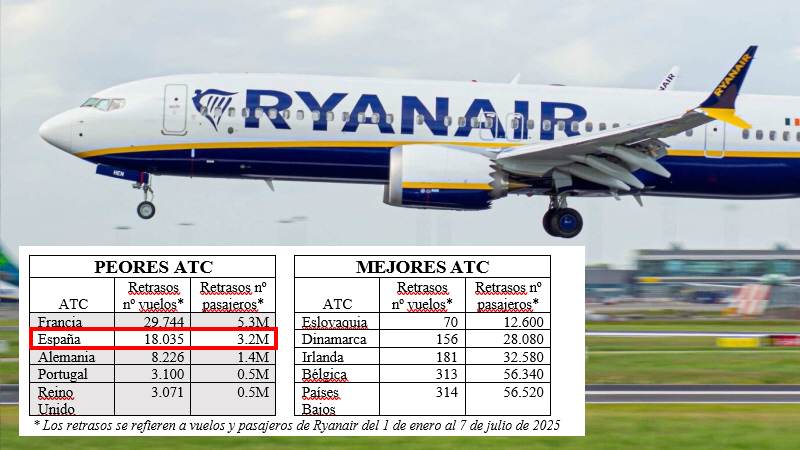 Fra 1. januar og frem til den 7. juli 2025 har flere end tre millioner Ryanair-passagerer oplevet forsinkelser på grund af Spaniens underbemandede og dårligt organiserede lufttrafikstyring, ATC.