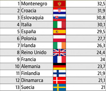 Men ingen slår folkene i Montenegro, hvor man i gennemsnit er 32,5 år, før man spreder vingerne og gør sig uafhængig af forældrene. Som nummer to er Kroatien med et snit på 31,9 år og Slovakiet med 30,8 år. På fjerdepladsen er Italien, og så altså Spanien.