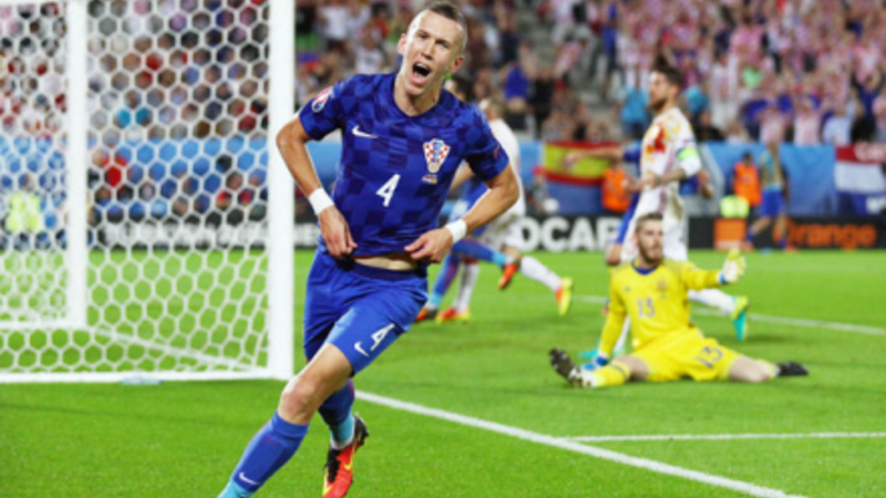 Balkan-mandskabet slog kontra efter en spansk chance, hvor Ivan Perisic modtog bolden i venstre side af banen. Han tog den direkte vej mod målet og smækkede til bolden med venstrefoden, der endte fladt i det korte hjørne. 2-1.