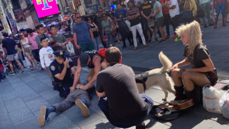 Overfaldet skete midt på det centrale og verdenskendte Times Square. Den spanske betjent var på ferie i USA og kom gående hen over pladsen. Han observerede, hvordan den amerikanske kollega henvendte sig til en mand, der gik rundt med en stor hund uden snor og generede andre på pladsen.
