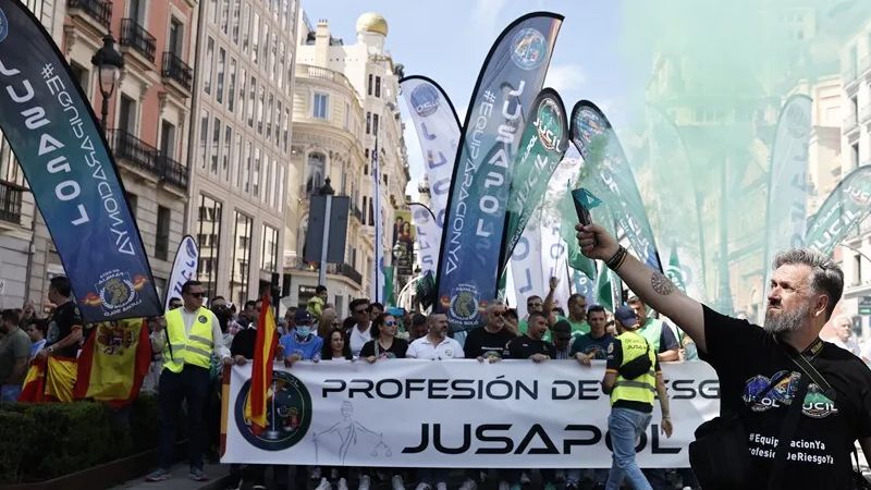 Tusindvis af betjente fra Policia Nacional og Guardia Civil indtog lørdag Madrids gader i en storstilet demonstration. Kravet er klart: De vil have de samme rettigheder og pensionsvilkår som de regionale politikorps.