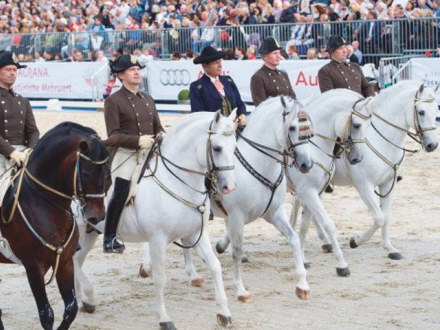 Hestene fra den sydspanske provins deltog i weekenden i et imponerende show i dressur-ridning lige uden for det centrale torv i Wien.