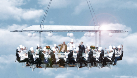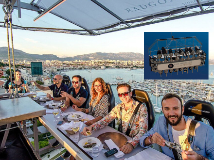 Dinner in the Sky er et belgisk-baseret selskab, der indtil videre har arrangeret flere end 5.000 middage i 40 byer rundt om i verden som Kuala Lumpur Tower, marinaen i Dubai, Villa Borghese i Rom, Athen, Copacabana Beach og Cape Town.