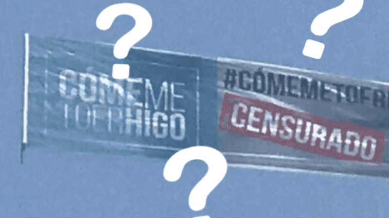 Indholdet var til gengæld noget uvant. I stedet for navnet på en restaurant eller butik, stod der bare “Cómeme to er higo” på banneret. Ved siden af var der printet et billede et billede af en nøgen kvinde med ryggen til kameraet.