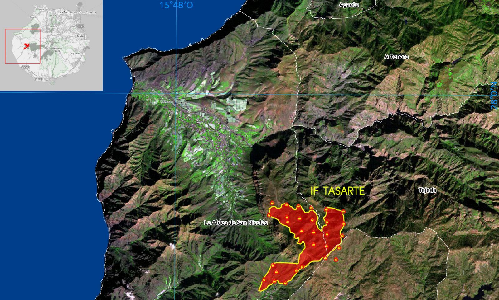 Men efterhånden har man nogenlunde overblik. Selvom branden endnu ikke er meldt under kontrol, kan evakuerede borgere i dag få lov til at vende tilbage til Tasartico, El Hoyo og Tocodomán.