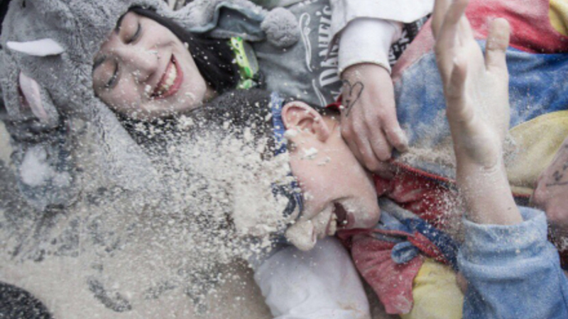 VIDEO: Spanien har et hav af traditioner, og den ene er næsten mere sær end den anden, men festligt er det. Gadekampen, hvor alle får mel fra top til tå, er bestemt ingen undtagelse!
