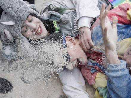 Alle, der var i nærheden, skulle dog forberede sig på at blive dækket i mel fra top til tå. Og så lige den der “ingen mel i øjnene”-regel er heller ikke så let at håndhæve.