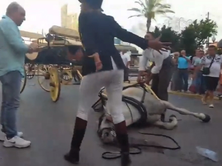 For øjnene af 70 til 100 personer kollapsede en hest ganske enkelt på Plaza de la Constitución og blev liggende. Hele episoden er blevet optaget på video, hvor man kan se, at hesten ligger og gisper.