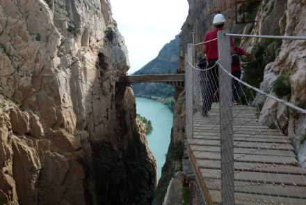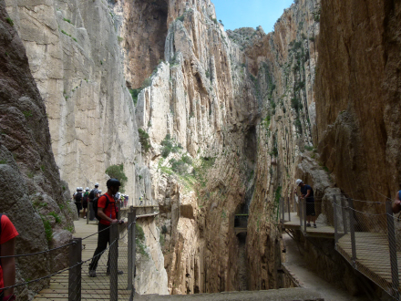 Selve Caminito del Rey foregår sådan set i to afdelinger med den karakteristiske gangbro banket ind i klippevæggen; i starten og i slutningen af de 2,9 kilometer. I midten af de to er der en strækning, hvor du går gennem skoven i et mere åbent områder.