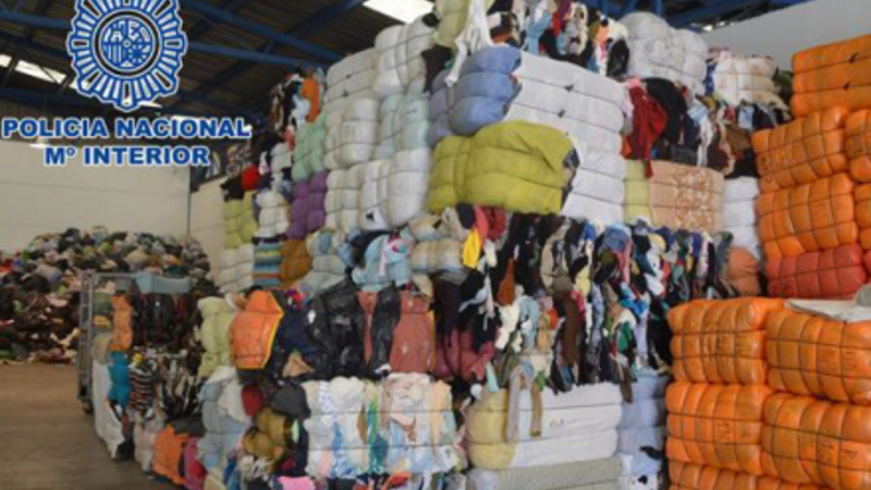 Politiet har beslaglagt ufattelige mængder af brugt tøj på et lager i Granada, efter bande har stjålet donationer fra velmenende borgere.