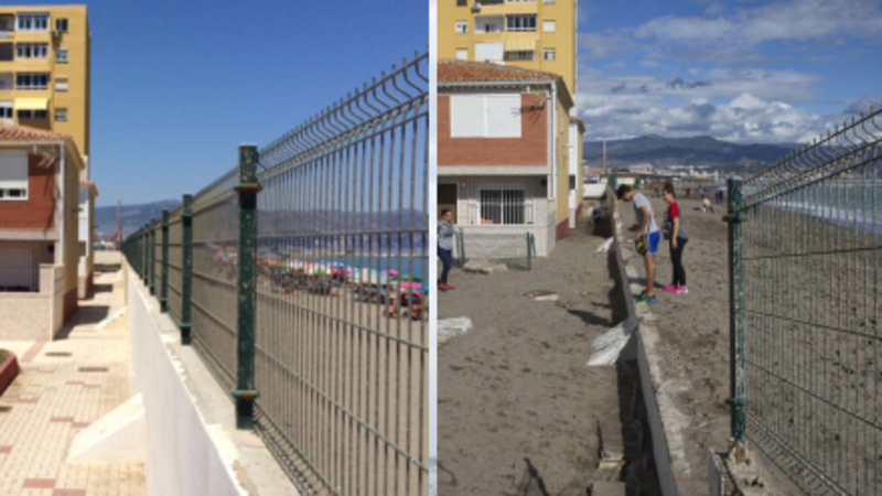 I Sacaba Beach i Málaga flyttede stranden pludselig ind, da strandmuren væltede
