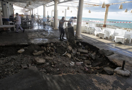 Mange steder er strandbarer voldsomt beskadiget, borde og stole er skyllet væk, og der er også sket skader på huse og gader i nærliggende bebyggelser.