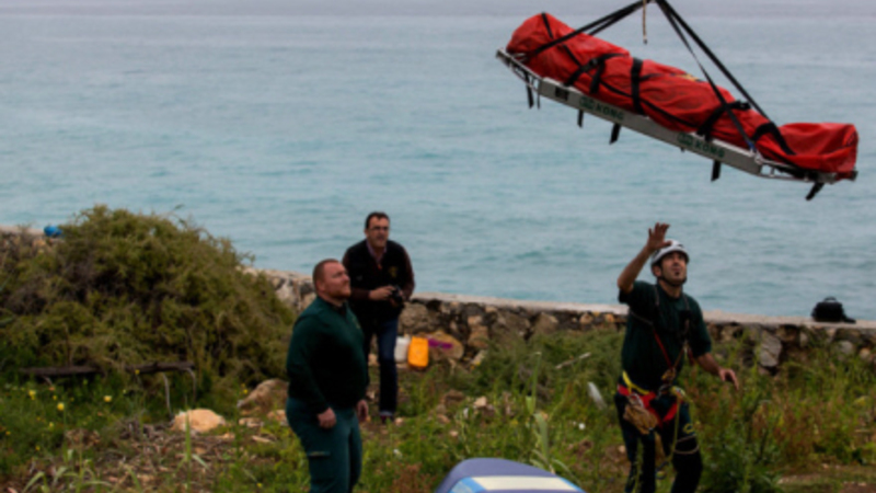 Først senere onsdag kunne specialtrænede redningsfolk og dykkere fra Guardia Civil i Málaga fortsætte eftersøgningen, men det var stadig besværliggjort at det meget dårlige vejr. Først torsdag lykkedes det for en Guadia Civil-helikopter at få øje på liget i det klippefyldte område.