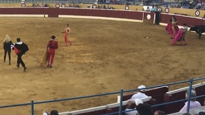Søndag fik tilskuerne i tyrefægterarenaen i Marbella, Málaga, sig et ekstrashow, da en pornostjerne fra Sverige sprang ned til tyren.
