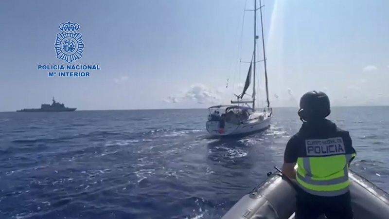 Betjente fra Policía Nacional har i samarbejde med den spanske flåde bordet et sejlskib i internationalt farvand, som var på vej mod den spanske kyst med 50 pakker indeholdende 1.500 kilo kokain.