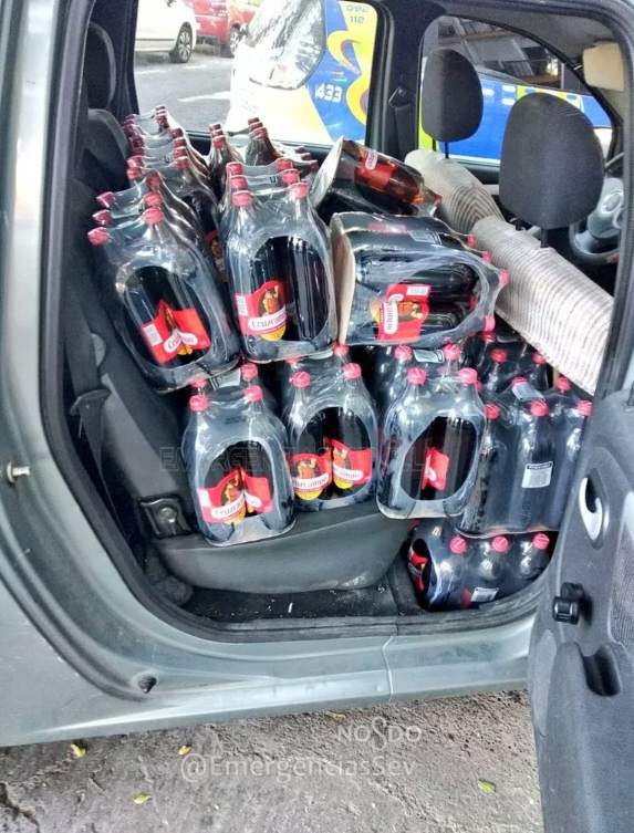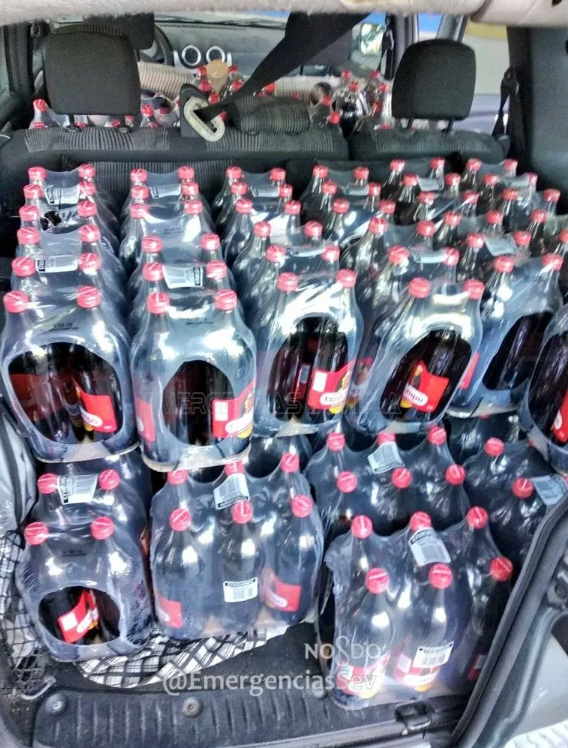 Emergencies Sevilla har heldigvis foreviget øjeblikket på sin Twitter-konto, og set ud fra billederne må man sige, at det er noget af en Cruzcampo-entusiast, politiet fik fat på.