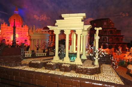 Hvert år laver de desuden en stor udstilling i chokolade, og dette år var det af antikkens Rom.