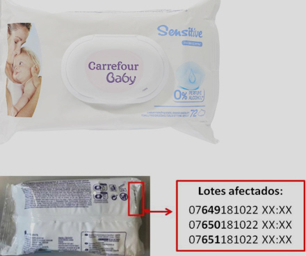 Flere partier af Carrefours Baby Sensitive Wipes er trukket tilbage fra hylderne, og forbrugerne opfordres til at tjekke nummeret på pakker derhjemme.