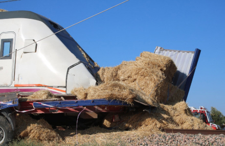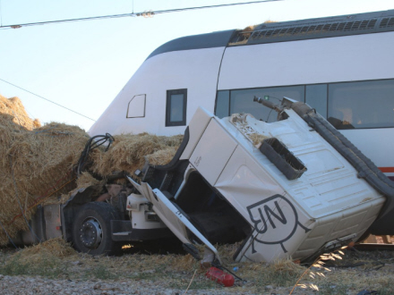 Nær den lille by Fuente de Piedra var en lastvogn i gang med at hente halmballer fra områdets landmænd, da den skulle krydse en bomløs togoverkørsel. Her gik det helt galt.