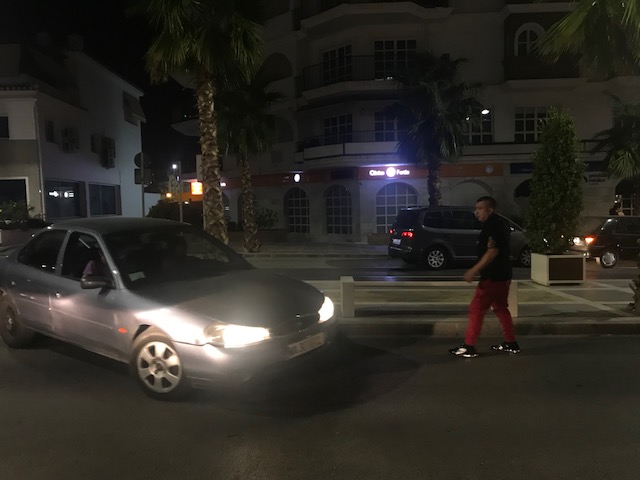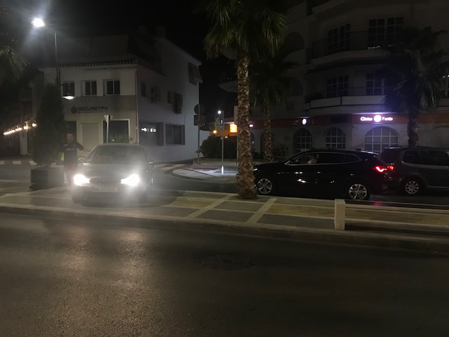 Torsdag aften blev bilisterne forsat fanget på lukkede veje - her lige uden for Puebla Lucia, hvor biler kørte over midterfortovet