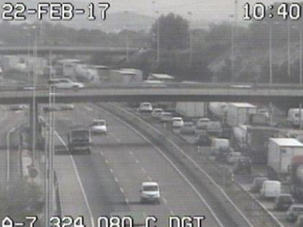 Uheldet skete ved daggry, da tre lastbiler stødte sammen i højden over Bétera i retning mod Barcelona.
