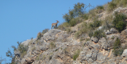 Oppe på toppen følger stien bjergryggen, og det er en spændende og sjov sti at gå på. Hold godt øje med de blå mærker, for stien kan af og til være svær at se. På et tidspunkt får vi en ret stor flok bjerggeder eller ”cabra montés” at se - ja, faktisk har vi set disse sky dyr hver eneste gang, vi har gået ruten.