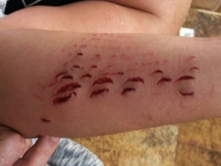 Efterfølgende lagde hun billeder af hajens værk på det sociale medie Twitter, og det ser ikke ud til at have været rart.