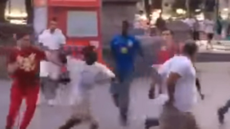 Chokerende video viser, hvordan turist fra Miami bliver overfaldet af gadesælgere i Barcelona.