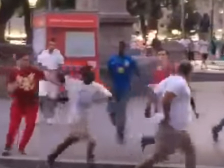 VIDEO: Gadesælgere angriber amerikansk turist, der kom en mor til undsætning. Gadesælgerne har dog en anden forklaring.