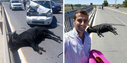 Selvom tyren døde et noget atypisk sted, kunne tyrefægteren Sergio Blasco ikke dy sig for at blive set foran det døde dyr.
