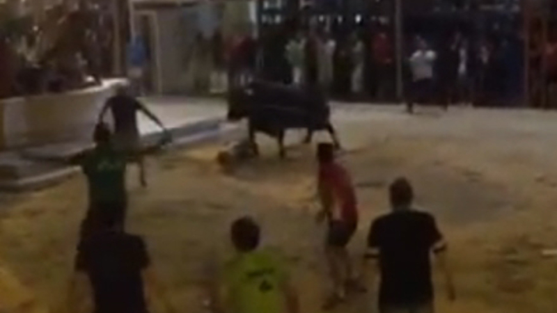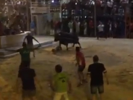Lige netop det var beboere i Foios i gang med i weekenden, da katastrofen pludselig indtraf: Tyren slipper løs fra sin indespærring og stanger vildt omkring sig, skriver lasprovincias.es.