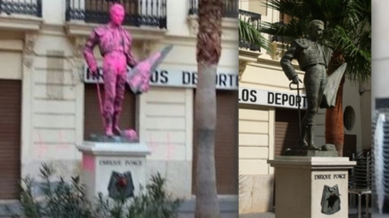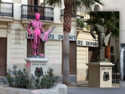 Enrique Ponce var en berømt tyrefægter, som fik sin egen statue i Chiva i Valencia. Der har han stået flot på en piedestal i sit “traje de Luz” indtil en gruppe unge mennesker bestemte sig til at lave ham og hans flotte tøj rosa.