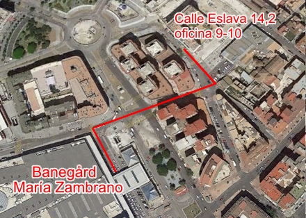 Her ligger TMPO i Málaga: Calle Eslava, 14, 2 - oficina 9-10 - Málaga - 300 meter fra banegården