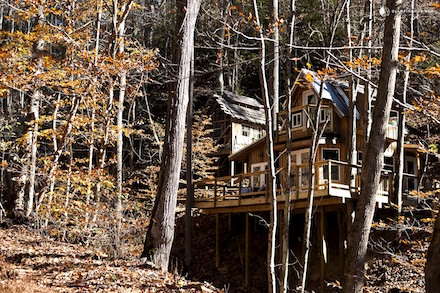 For eksempel kan man for godt 170 euro per nat leje sig ind i et charmerende træhus i North Carolina: