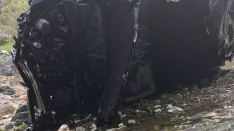 Der var den landet på venstre side i flodsengen, men alt tydede på, at føreren havde været i stand til at springe ud på vejen ned.
