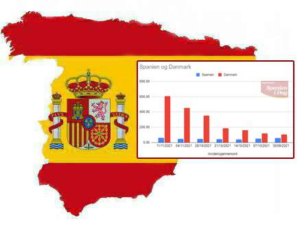 CORONA: Smittetallene i Danmark fortsætter himmelflugten, men Spanien viser også stigning.